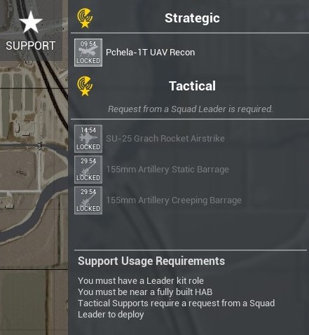 Strategische Unterstützung wird zur Aufklärung eingesetzt und erfordert keine Anforderung von einem Squad Leader.