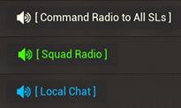 - Squad Kanal (Kanal Farbe green - B) - Nur Leute aus dem eigenes Squad können diesen Kanal benutzen. Nur die eigenes Squadmember hören diesen. Mit der Taste B wird der Funkkanal geöffnet.
