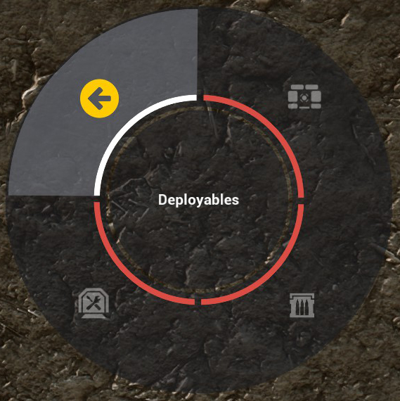 Die erste Seite des Bau Menüs (Radial Menü) wenn du die Taste T drückst. Nur der Squadleader mit dem Squadleader-Kit hat diese Option. Beachten Sie, dass der SL die Option für die |