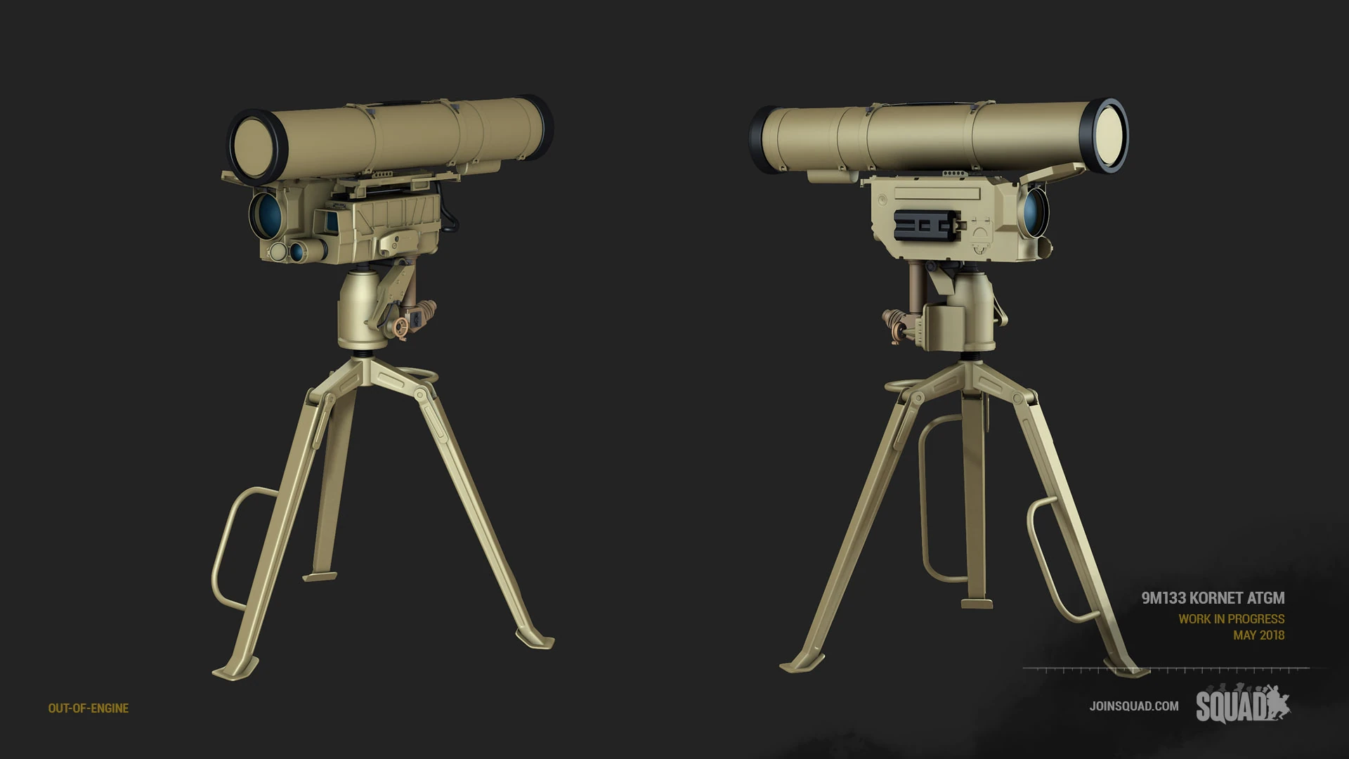 The 9M133 Kornet is an anti-tank guided missile missile available as deployables and vehicle-mounted aramanet in Squad.
