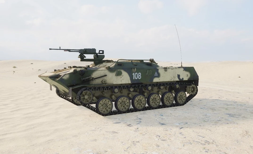 The BTR-D is a tracked amphibious armored personel carrier that offers low mobility, moderate protection, and surprisingly large amounts of firepower for a vehicle of its class. Due to it being rather low to the ground relative to other vehicles and fairly slim it excels at navigating through crowded terrain such as forests, city streets, and large buildings.