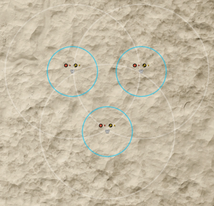 - The 300 meter exclusion radius and 150 meter build radius of radios can be viewed on the map if the Viewing FOB Radio option is toggled on, shown as a gray circle and blue circle, respectively.