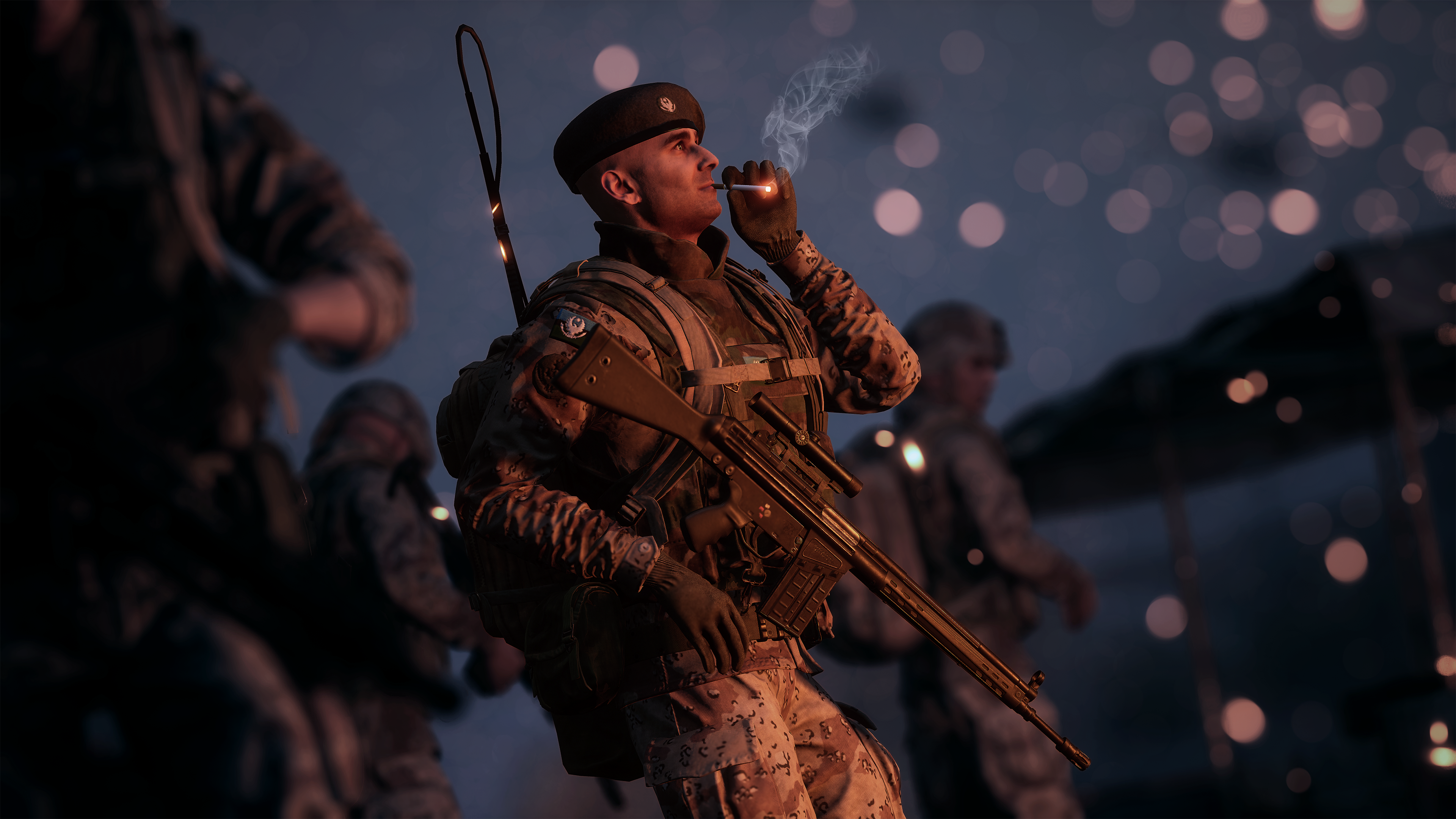| G3A4 + Foregrip + ZF1, 6 mags | Hi-Power, 5 mags G3 Bayonet | F1 Fragmentation, 1 grenade | M18 Smoke Green, 2 grenades M18 Smoke White, 2 grenades M18 Smoke Yellow, 2 grenades | Field Dressing, 2 packages | Field Binoculars Rally Point |