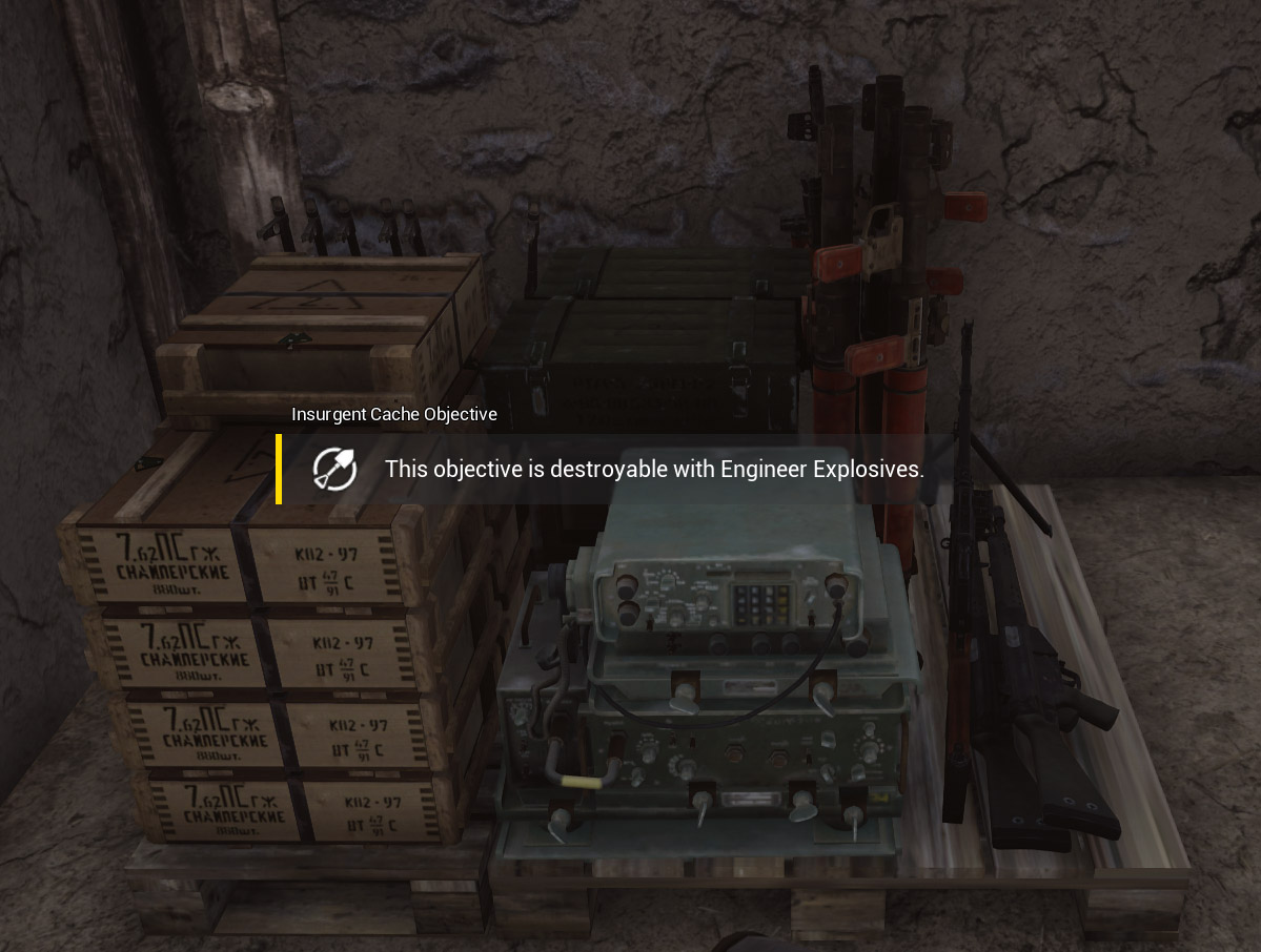 NOTE: When you get close to the cache, it will advise that the object is destroyable with Engineer Explosives.