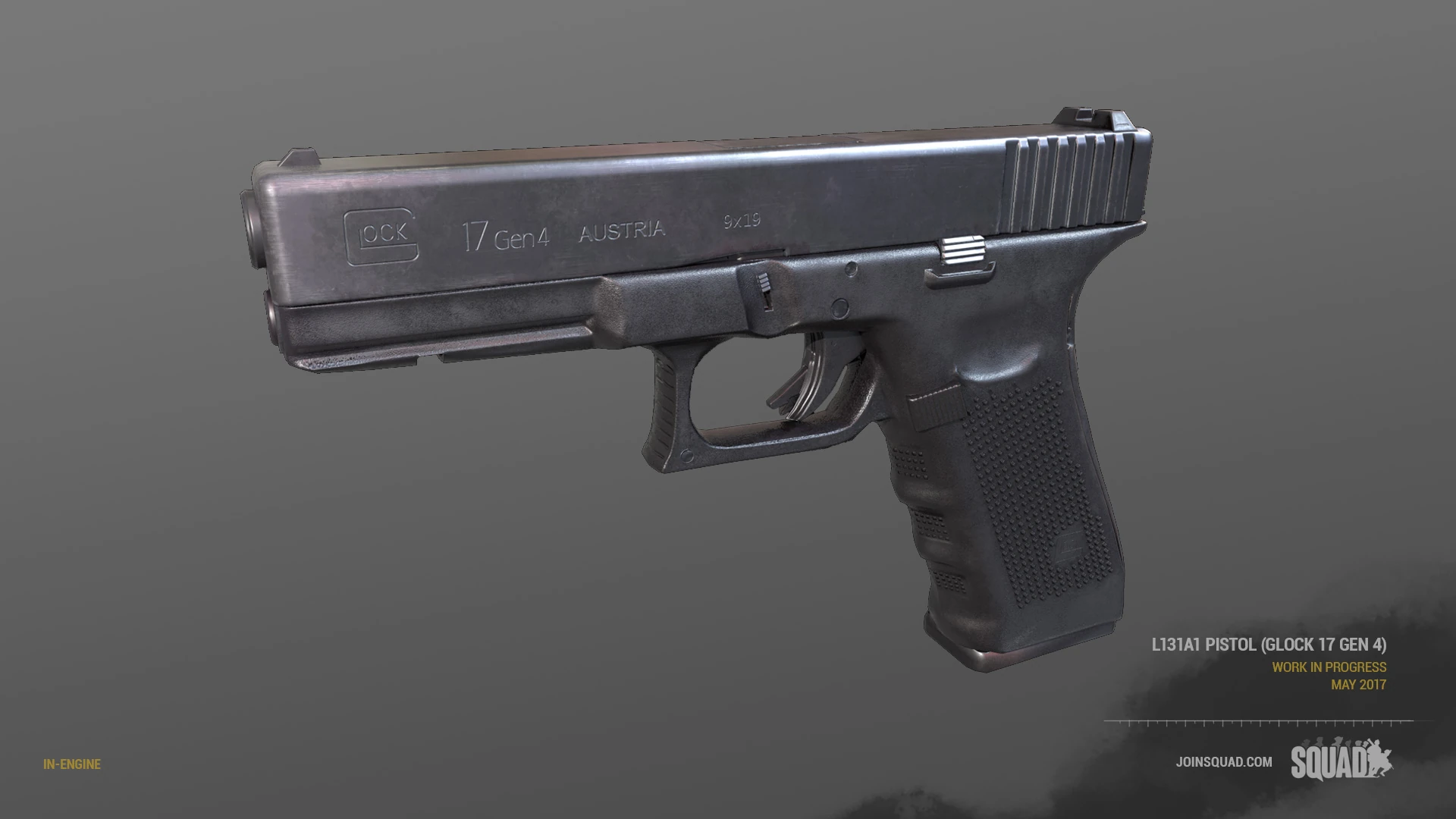 The Glock 17 was designed by Austrian engineer Gaston Glock in 1982, which is the first successful pistol with a polymer frame. Soon, the Austrian Armed Forces formed a strict competition to replace the outdated Walther P39 as the standard sidearm of the military. Later, the Glock 17 quickly rose to fame in many NATO countries and is used as the standard sidearm for many NATO countries' militaries. The G17 is the standard military sidearm for the British Army since 2013. The G17 is a self-loading, semi-automatic, short recoil, locked breech, tilting barrel pistol. The G17 is also prominently known to be made out of a high-strength nylon-based polymer invented by Glock, increasing the durability of the pistol. The G17 uses 17-round detachable box magazines. The gun uses the 9×19mm Parabellum cartridge.