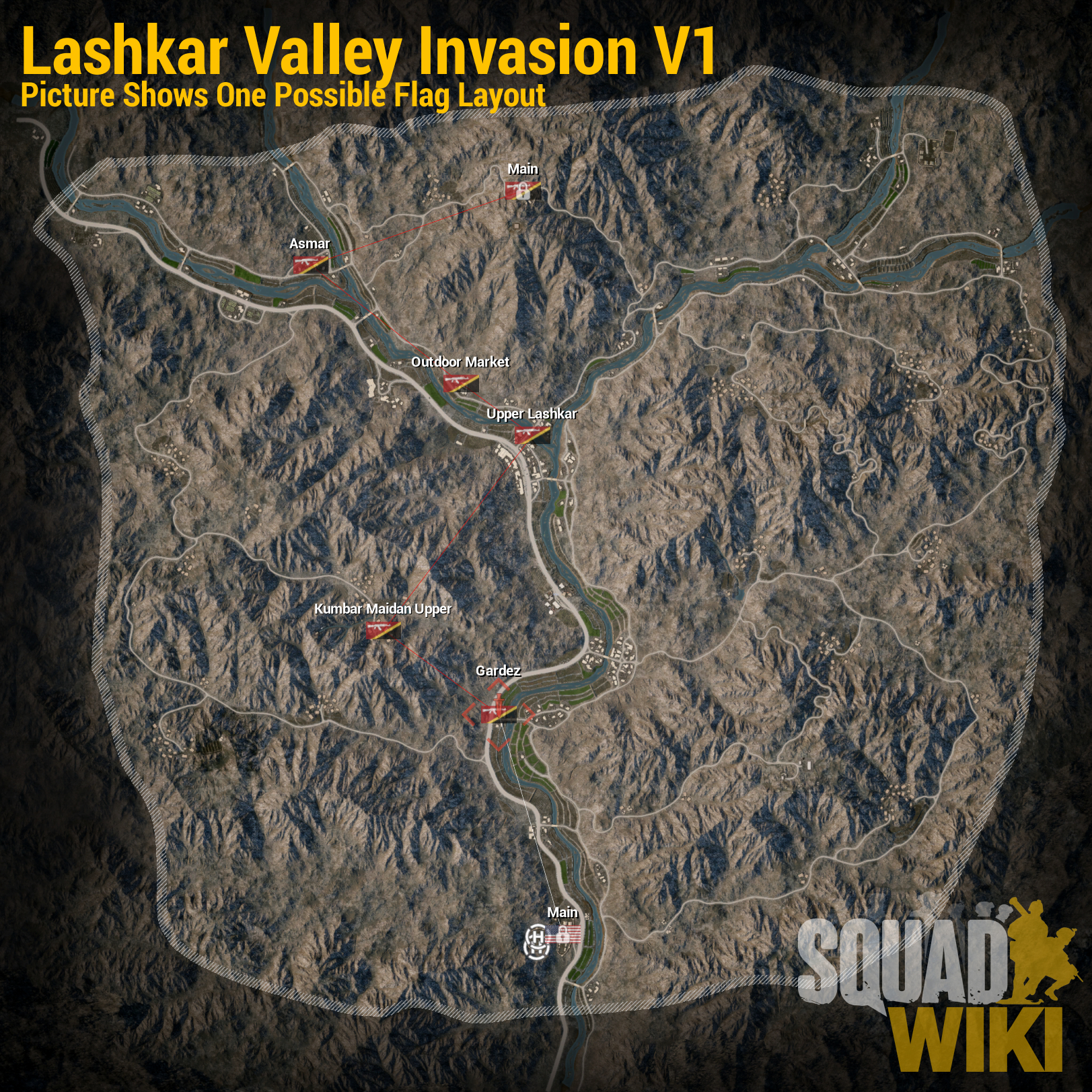 Lashkar Valley is one of the maps available in the game Squad. The map is set in a mountainous region with framing villages. It uses a mix of Northern Afghan and standard Afghan Buildings.