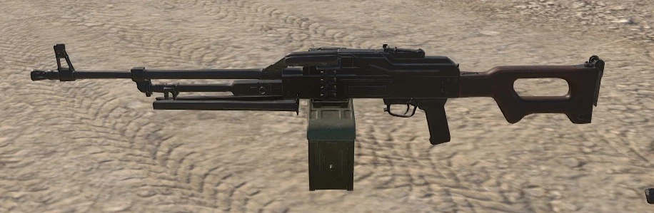- The PKM shares its damage model with PKP Pecheneg, but with a slightly worse accuracy at 5 MOA.