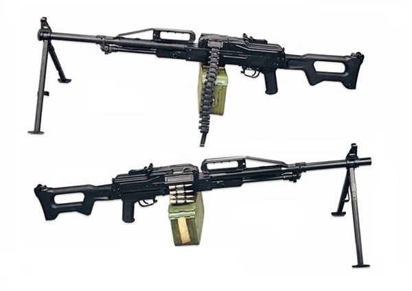The Pecheneg (Russian: Печенег), also referred to as the "PKP" is a Russian 7.62x54mmR general-purpose machine gun. It is a further development and modification of the PK machine gun, hence the PKP name, as in PK Pecheneg. It is said to be more accurate than all its predecessors due to a heavier, non-removable, forced-air-cooling barrel with radial cooling ribs and a handle that eliminates the haze effect from hot gases and keeps the barrel cooler, making the weapon more reliable. Furthermore, the weapon is capable of having a telescopic sight or other sights mounted on it, increasing its accuracy and effective range.