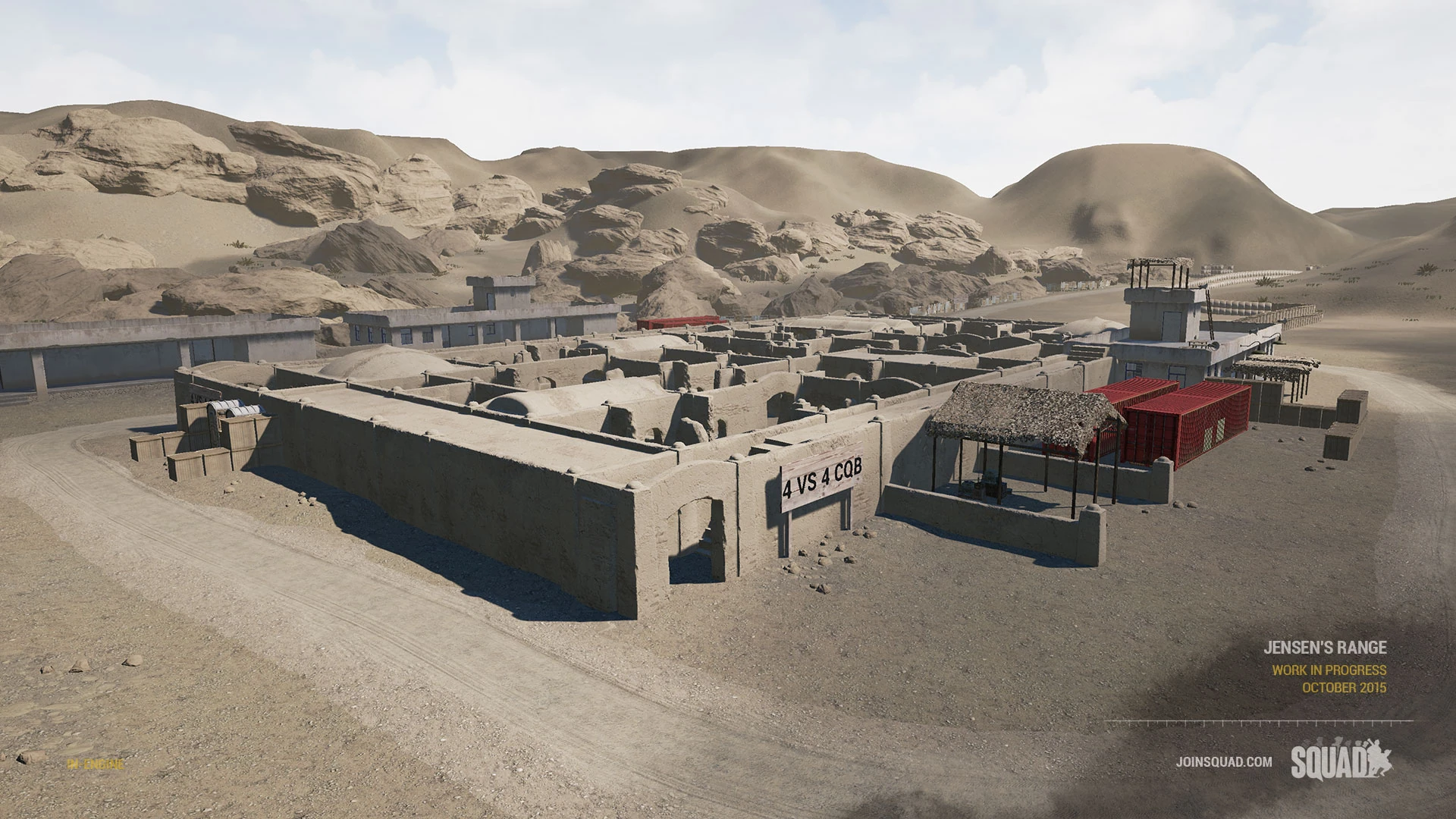 Shooting Range (or formerly "Firing Range") is one of the Game Modes in the game Squad. You start the Shooting Range from the Main menu. In this mode, players are left alone on an offline map of Jensen's Range. This allows you to learn how to control your character and explore the map. You can load all available maps and even mods (see instructions in Playing a Mod).