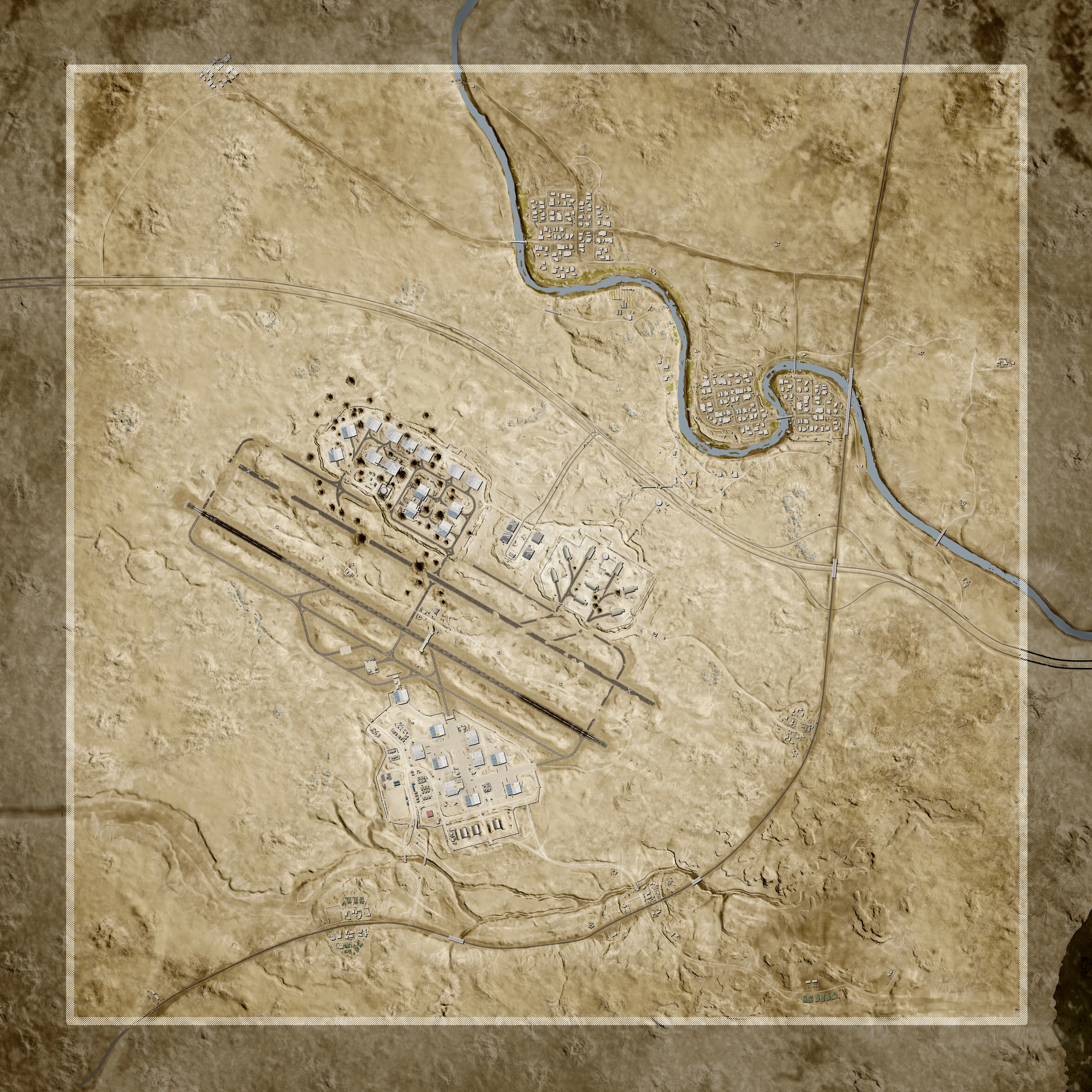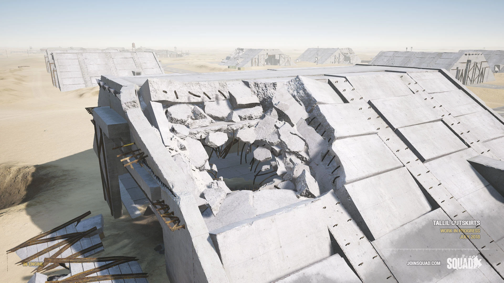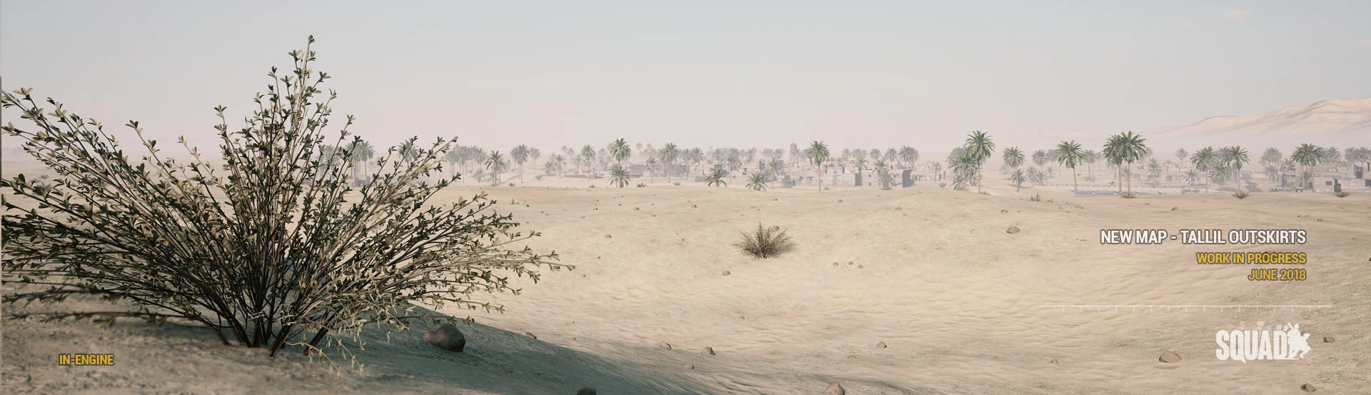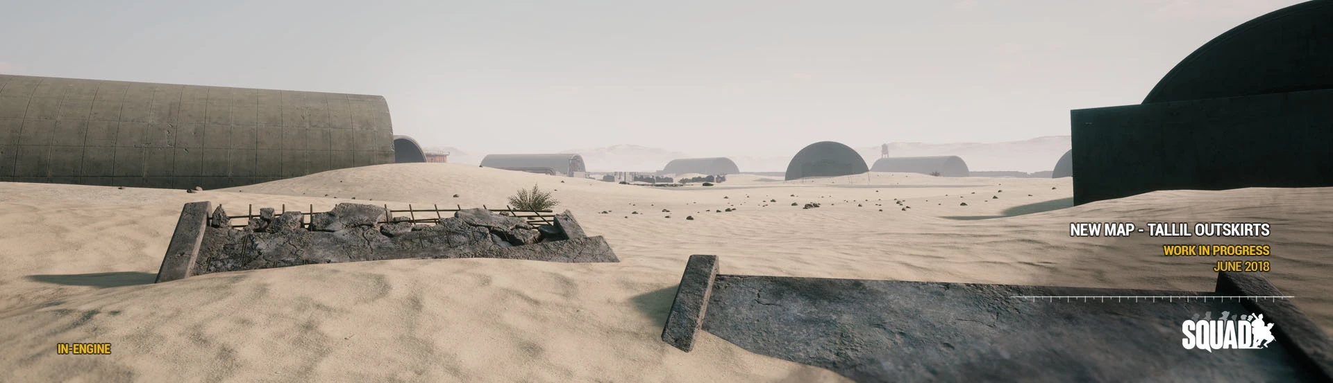Tallil Outskirts (Arabic: "مشارف تلال") is a map in Squad. This map is based on Tallil Air Base and its historic role in the South Iraqi region during the 1980s Iran-Iraq war, the 1990s Gulf War, and as a joint Iraq-U.S. airfield today. The most predominant features are its massive aircraft bunkers and defensive positions surrounded by mostly open sandy desert, rocky outcrops, and villages. The map's focus is on vehicle-based combat, but infantry squads that work in conjunction with armored units will find great success on the battlefields of Tallil.