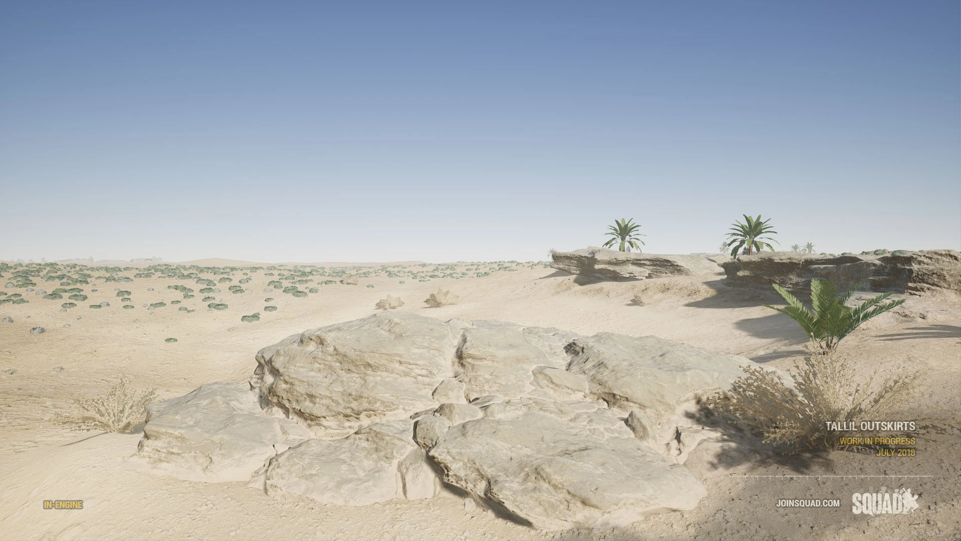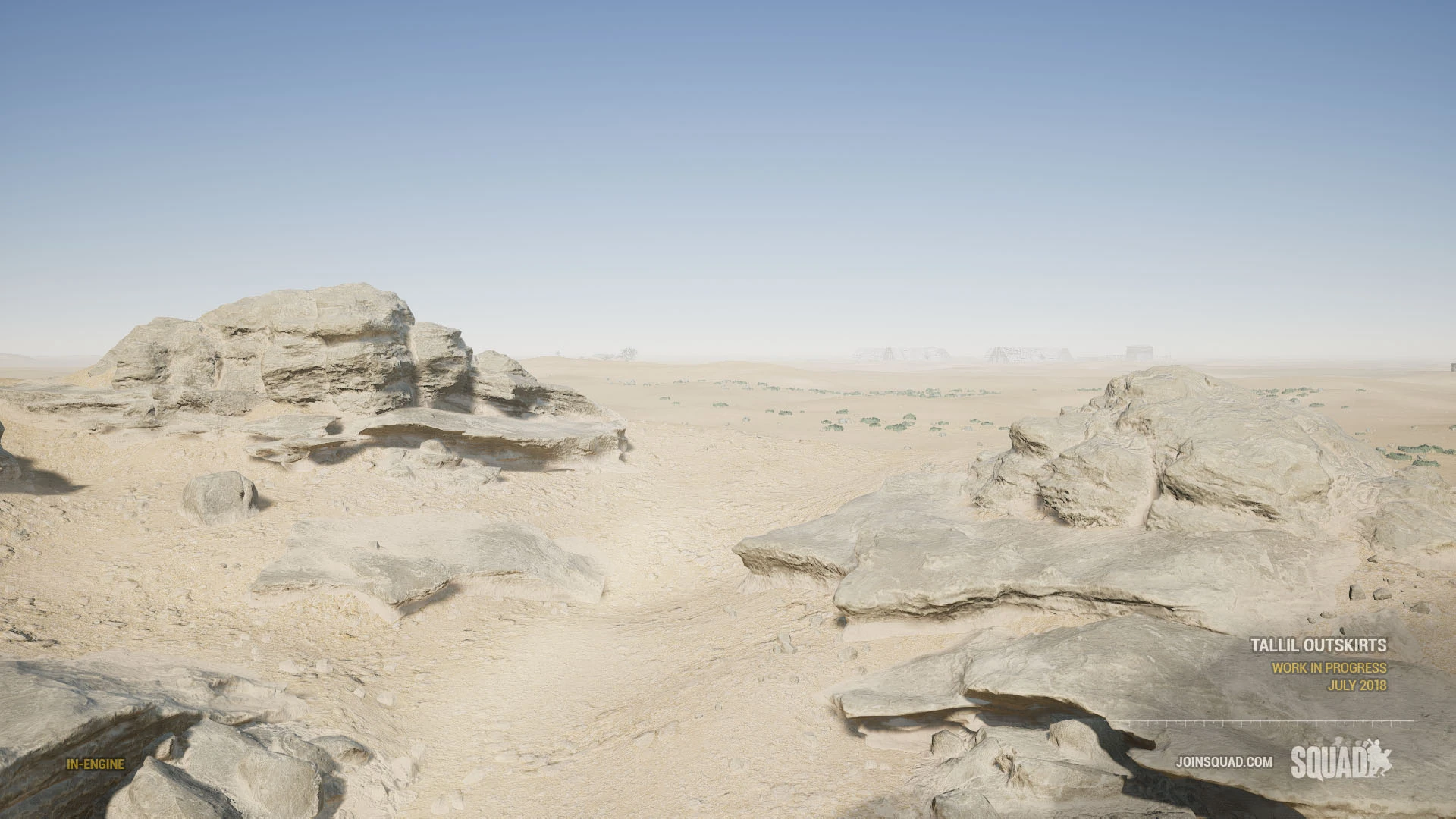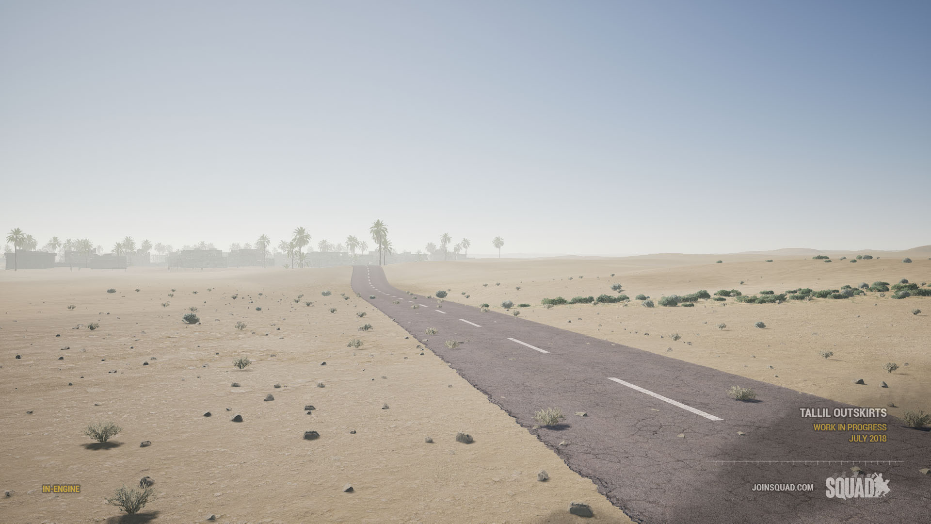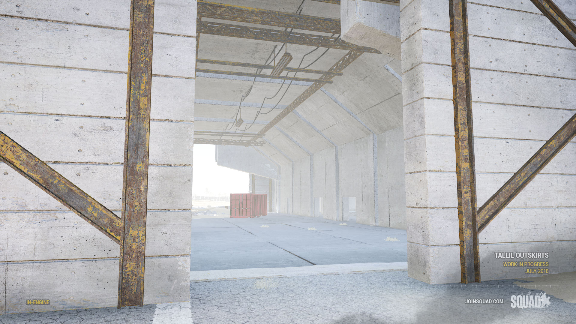 Tallil Outskirts (Arabic: "مشارف تلال") is a map in Squad. This map is based on Tallil Air Base and its historic role in the South Iraqi region during the 1980s Iran-Iraq war, the 1990s Gulf War, and as a joint Iraq-U.S. airfield today. The most predominant features are its massive aircraft bunkers and defensive positions surrounded by mostly open sandy desert, rocky outcrops, and villages. The map's focus is on vehicle-based combat, but infantry squads that work in conjunction with armored units will find great success on the battlefields of Tallil.